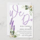 This is a rustic and elegant 'We Do' calligraphy wedding invitation in lovely purple text on a white background, adorned with watercolor lavender and white florals with foliage. Original artwork direct from the studio created with your special day in mind. Easy to customize the text to create something really unique.