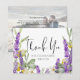 Stunning design featuring original watercolor artwork of lavender and lemons. Shades of purple contrasting with citrus yellow and sage green foliage make this card a beautiful part of your wedding stationary. Customize with your couples wedding photo on the reverse of this card overlayed with your own personal message.