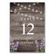 Rustic Lavender Lights Wedding Table Number