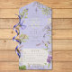 ALSO AVAILABLE WITH A QR CODE TO SCAN OR WITH DINNER SELECTION OPTIONS. This design features lavender, pale blue, and white wildflowers with delicate greenery on a lavender background. Personalized All-In-One invitations are a unique combination of both a beautifully printed custom invitation with an easy to tear off perforated RSVP postcard. And they are so easy to use! You simply fold, then seal the back flap with the three included clear stickers, and mail. And when your guests receive your custom invite, they just tear the perforated RSVP Card off and drop it back in the mail to you!