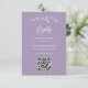 This lovely rustic wedding reply card features a lovely lavender purple background with a hand-drawn wildflower sprig and elegant typography in white. Change the QR Code to your own wedding website url so that your guests can conveniently reply online. It's the perfect design for a rustic yet elegant wedding and coordinates beautifully with our Rustic Wildflowers suite... see the design collection for more items.