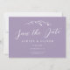This elegant wedding save the date features a lovely lavender purple background, hand-drawn wildflower sprig, and elegant typography. On the back is your photo in horizontal format. The photo on the back is removable if desired. It's a perfect design for a rustic yet elegant wedding! See the collection for more items!