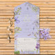 ALSO AVAILABLE WITH A QR CODE TO SCAN OR WITH DINNER SELECTION OPTIONS. This design features lavender, pale blue, and white wildflowers with delicate greenery on a lavender background. Personalized All-In-One invitations are a unique combination of both a beautifully printed custom invitation with an easy to tear off perforated RSVP postcard. And they are so easy to use! You simply fold, then seal the back flap with the three included clear stickers, and mail. And when your guests receive your custom invite, they just tear the perforated RSVP Card off and drop it back in the mail to you!
