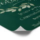 This beautiful sign is a wonderful way to welcome guests to your wedding celebration. It features a simple yet elegant design with a marbled emerald green background and modern script lettering between sprigs of watercolor leaves in shades of sage green and pale olive.