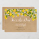 This botanical lemons blossom save the date card features an elegant script save the date above your details set in chic typography on a rustic kraft background. Designed by Thisisnotme©