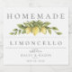 Rustic watercolor lemons and leaves, limoncello beverage label. Modern and trendy typography design style.