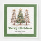 Modern Christmas dinner napkins featuring three minimalist watercolor Christmas trees in earthy green and gold with playful leopard pattern accents and hand-drawn lettering. A stylish choice for festive tables, these napkins are personalized with your custom name, adding a unique and elegant touch to your holiday dinner or Christmas party décor. 🎄✨