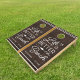 Upgrade your outdoor setup at your seaside abode with this cute rustic cornhole set featuring the phrase "life is better at the beach" in white lettering accented with a starfish and an oar on a faux wood plank background. Personalize with your family name and/or year established beneath.