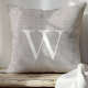 Rustic Light Gray Burlap Monogrammed Throw Pillows