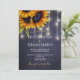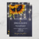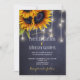 Rustic lights sunflower navy chalkboard wedding invitation