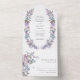 Elegant Rustic Lilac All-In-One Invitation. Simplify your wedding stationery without compromising elegance with this stunning all-in-one send-and-seal invitation. This invitation effortlessly blends romance and sophistication, featuring a breathtaking hand-painted watercolor wreath of lilacs in soft lavender, purple, and blue intertwined with lush greenery. The easy-to-use format includes a tear-off RSVP card for added convenience, while the seamless design ensures a polished and coordinated look. Fully customizable, you can personalize the wording, adjust font styles and sizes, and modify the background to create a perfect match for your wedding theme. Make a lasting first impression with an invitation that combines beauty and practicality.