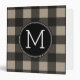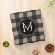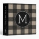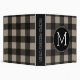 Rustic Linen Black Buffalo Plaid gingham Monogram 3 Ring Binder