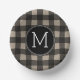 Rustic Linen Black Buffalo Plaid Pattern Monogram Paper Bowls