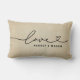 Rustic Linen Love Heart Script Couple Names Lumbar Pillow