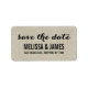 Rustic Linen Script Wedding Save the Date Address Label. Design by Elke Clarke© for MonogramGallery printed by Zazzle. Send out your save the date cards to your friends and family using this beautifully, simple label with the words "save the date" written in a white hand writing typography script text overlay. Printed photo effect of beige linen background. Other colors available.