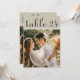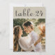 Warm linen texture and handwritten calligraphy bring rustic charm to this wedding photo table number card. The natural, organic feel pairs beautifully with barn, vineyard, and outdoor reception settings. To customize, type in the table number, click Change by the default photo to upload your own, and add that individual table number card to your shopping cart. Repeat for all of the table numbers that you need.