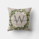 Rustic Linen Wreath Monogram Wedding Keepsake Throw Pillow