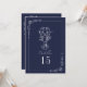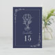 Illustration of rustic lobster at top with line art botanical seashell border. Background is navy blue color.