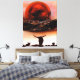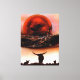 Rustic Longhorn Ranch Canvas Print by artist Jason Girard in dark brown to rusty orange colors depicts a longhorn cattle ranch with fence and moon setting made for the rustic art enthusiasts home decor who may live on a farm or ranch and have livestock.