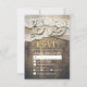 Rustic Country Style Wedding RSVP Reply Card Templates - Gold Script, Love Rope and White Lace, Burlap Cloth on Old Barn Wood Background.