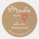 Rustic Made with Love Red Heart Symbol Kraft Paper Classic Round Sticker