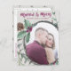 Celebrate your first married Christmas with this rustic watercolor style holiday photo card featuring "Married & Merry" text in plum calligraphy font with line of editable text and place for your keepsake photo framed by a birch twig, holly and pine cone wreath on gray background with optional opaque overlay. Complementary holly pattern on back.