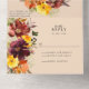 Elements: vibrant fall florals against a pale peach background. Classic serif fonts. Colors: marsala, orange, burnt sienna, plum, green, peach. Themes: rustic, fall, autumn, boho, bohemian, country, vintage. Collection: Rustic Marsala Burnt Orange Fall Wreath Wedding Collection. Product Type: All-In-One Wedding Invitations