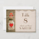 These rustic mason jar with hearts table number cards are part of a complete wedding invitation set.
