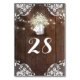 Rustic country barn wedding table number cards with baby's breath, lace and mason jar lights