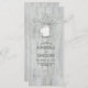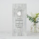 Rustic barn wood wedding programs with mason jar, baby's breath and string lights