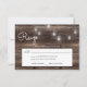 This barn wood and mason jar string lights wedding RSVP is perfect for a rustic wedding. This RSVP features mason jars on a barn wood background. Make this RSVP card your own by your RSVP date. For further customization, please click the "customize further" link and use the advanced design tool to modify this template.