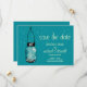 Perfect for a country style wedding or maybe you just love Mason Jars! Old vintage Mason Jar hanging on a hook with whimsy fireflies. Background color is Peacock Aqua Blue (03:2:1). If you have any questions on this design or want a color change please email me paula@labellarue.com