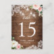 Rustic Mason Jar Lights Floral Wedding Table Number Card.