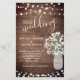 This affordable wedding design features dainty watercolor baby's breath flowers in a mason jar vase on a rustic wood background with string lights. Click the customize button for more flexibility in modifying the text. Variations of this design, different paper types, as well as coordinating products are available in our shop, zazzle.com/store/doodlelulu. Contact us if you need this design applied to a specific product to create your own unique matching item! Thank you so much for viewing a DoodleLulu by 2 june bugs design!