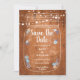 Featuring string lights above an artsy mason jar filled with your personalised save the date details and scattered delicate flowers. Designed by Thisisnotme©