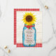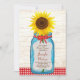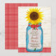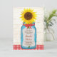 Announce your marriage in style with this country wedding invitation set featuring a vintage mason jar and a bunch of cheery sunflowers! A red gingham pattern and wood background adds rustic flair.