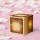 Rustic wedding favor box featuring a wood background with mason jar and string light accents. Perfect for barn, farmhouse, and country-style weddings. Personalize with your names and wedding date to thank guests with style.