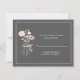 Pink and grey rustic RSVP reply cards with soft pink flowers in a vintage mason jar on a grey background. Get the matching mason jar wedding invitations in two different styles.