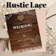 Lovely rustic wood look wedding invitations featuring lace, Gypsophila (baby's breath) mason jar and strings of lights graphics. Ideal for your barn, country, woodland, forest, southern wedding. ⭐ Design by LeahG® Founder of the Low Budget Wedding Network® Congratulations on your engagement. 📌PIN this design to your wedding moodboard on Pinterest and enjoy your wedding planning journey. This item is one of many in a wedding collection that includes a variety of typography layouts. VIEW THE ATTACHED COLLECTION TO SEE THEM ALL. Most of my designs include text template fields on both sides (where allowed by the product) to ensure you get the most value and practical benefit. In the case of invitations and save dates, this enables you to include rsvp, gift registry, wedding website, reception details, and, in the most recent designs, a QR scanning code. For other items, you can add text or images as required for your event. ⭐Thank you for visiting, please visit again soon. ©Design and Text LeahG®