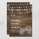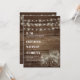 This rustic wood look wedding invitation is perfect for a wedding with a woodsy, outdoor or barn theme. The mason jar illustration and strings of lights adds a charming touch to the invitation and is suitable for all seasons. Whether you're planning a fall, winter or autumn wedding, this invitation will set the tone for your special day and be a great match for a rustic, country or vintage themed wedding.