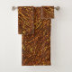 Rustic masonry style brown and gold tone bath towel set