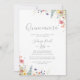 This rustic meadow botanical Quinceañera invitation is perfect for a garden 15th birthday party. The design features seamless hand-painted yellow, navy, blue, yellow, pink, and blush wildflowers with botanical leaves.
