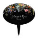 This rustic meadow botanical wedding cake topper is perfect for a garden wedding. The design features seamless hand-painted yellow, navy, blue, yellow, pink, and blush wildflowers with botanical leaves in a black background.