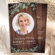 Rustic Wood and Eucalyptus Greenery Unique Funeral Thank You Cards. These sympathy funeral cards feature a custom photo on rustic wood with eucalyptus greenery with quote In Loving Memory. These memorial sympathy cards are perfect for funeral thank you cards, or celebration of life thank you cards.