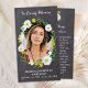Rustic Daisy Floral Sympathy Funeral Prayer Cards. This modern yet elegant memorial prayer card features a daisy flowers on a rustic chalkboard design . Front "In Loving Memory" Personalize this memorial funeral prayer card with your loved ones photo, name & dates, and sentiment. Back ~ 'May You Always Walk In Sunshine' Poem, which can be personalized, please reach out if you would like a design with a specific poem other than. This memorial prayer card will be a treasured keepsake, for funeral services, and celebration of life. COPYRIGHT © 2020 Judy Burrows, Black Dog Art - All Rights Reserved. Rustic Memorial Floral Photo Funeral Prayer Card