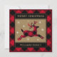 Rustic Merry Christmas Reindeer Red Buffalo Plaid Holiday Card
