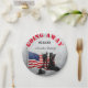 Rustic custom celebration party plate.Perfect for a soldier who is either Going Away, Coming Home or a Retirement party. It features a rustic background with a patriotic American flag, a pair of army boots name and date.