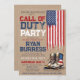 This rustic US Military boots & American flag deployment / overseas active duty base going away / farewell Party double- sided invitation with the saying "CALL OF DUTY PARTY" over rustic kraft background on front, and "When Duty Calls, The Brave Answer" design on back, is a great way to send off a brave Airman (Air Force), Guardian (Space Force), Soldier (Army), Marine (Marines), Sailor (Navy), or Coast Guardsman (Coast Guard) who is heading to deployment / to their new overseas Active Duty Base! ♥ Lovingly created by an Air Force Mom ♥ Featuring a rustic kraft background on both sides with drip USA flag, watercolor US flag combat boots, and vintage red, white, and distressed blue patriotic typography, it is an invitation template for you to easily personalize each line for any branch of service! Need to adjust placement or make fonts bigger/smaller to fit the space provided? No problem! Simply click the blue "Edit using design tool" button at the bottom of the "Personalize" window, click on the element that needs adjusting, and click the "done" button at the top right corner to complete. **Our son is a recent F-16 Crew Chief vet, so I too, had a hard time finding appropriate invitations and cards for BMT & Graduation & Active Duty - all my designs for the full training process, here in my Zazzle store, were created in honor of our son and all our brave military service personnel and families. See all my invitations / cards (available for print & ship or instant digital download for those in a rush) / clothing / vinyl graduation banners / and much more for BMT, Grad Weekend and beyond, available in my store by clicking the blue “by FigLilyCo-military” link in the upper right hand corner of this screen and then click my store name under my photo to see the entire collection. **Custom order requests are always welcome - click the "message" button, or email direct (with a quick response): contact@figandlilyco.com. ♥ From this proud military family to you and yours - we send our sincere blessings, and HUGE thanks for the service, courage, and sacrifice of your US Service Personnel ♥