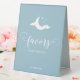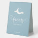 Create a sweet and dreamy moment at your celebration with this Blue Celestial Baby Shower Favor Table Sign. Featuring a soft dusty blue background with a delicate crescent moon, tiny stars, and elegant script lettering, this tent-style sign adds the perfect touch to your “Over the Moon” baby shower theme.