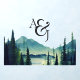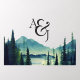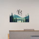 Rustic Minimal Watercolor Pines Wedding Monogram Wall Decal